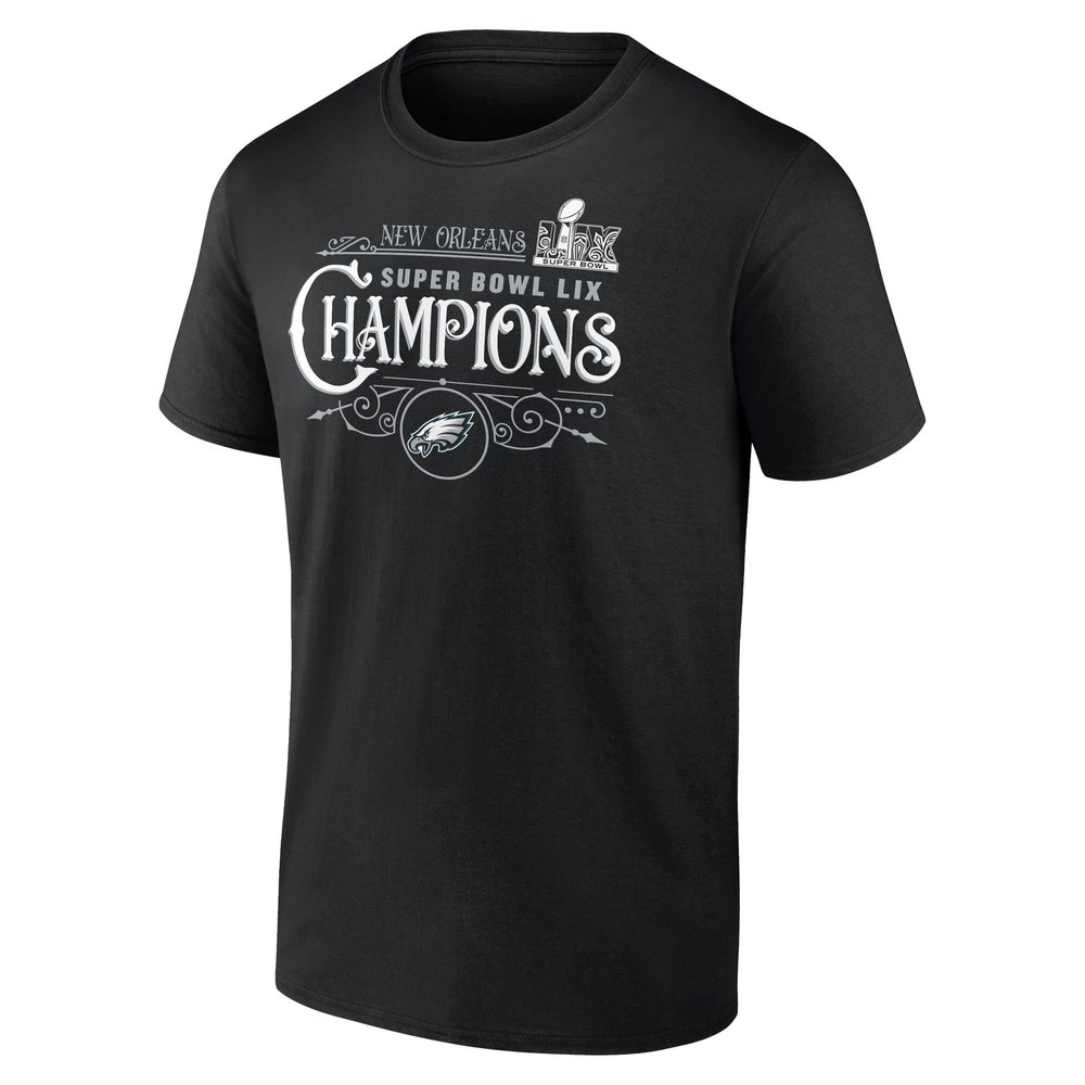 Men's Philadelphia Eagles Black Super Bowl LIX Champions Custom Name & Number T-Shirt
