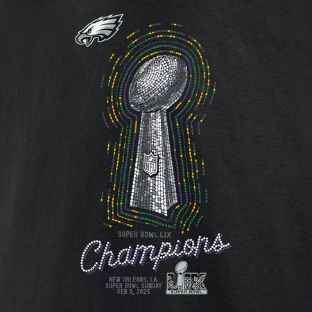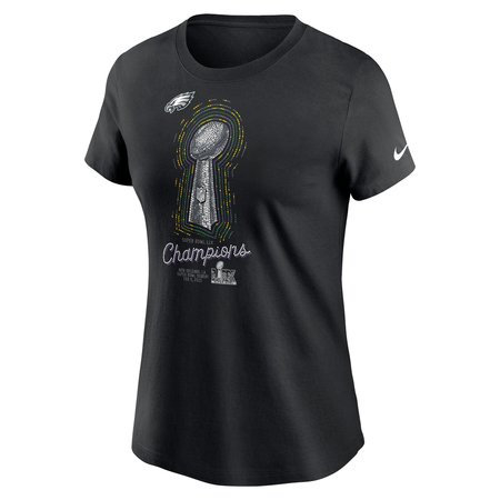 Women's Philadelphia Eagles Nike Black Super Bowl LIX Champions Lombardi Trophy T-Shirt
