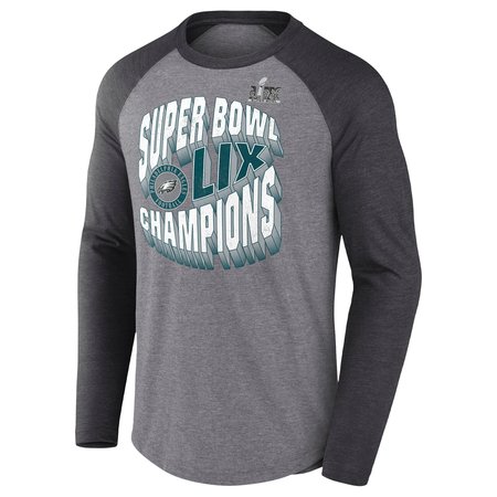 Men's Philadelphia Eagles Heather Gray Super Bowl LIX Champions Historic Win 3/4-Sleeve Raglan Tri-Blend T-Shirt