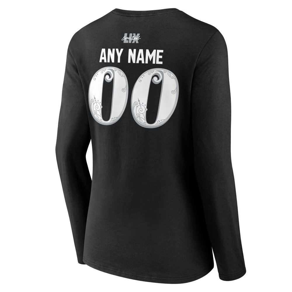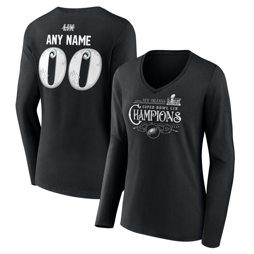 Women's Philadelphia Eagles Black Super Bowl LIX Champions Custom Name & Number Long Sleeve V-Neck T-Shirt