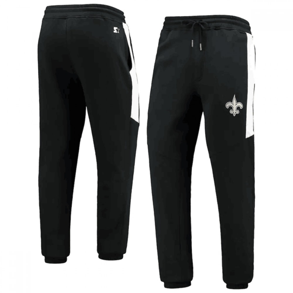 Men's New Orleans Saints Starter Black/White Goal Post Fleece Pants