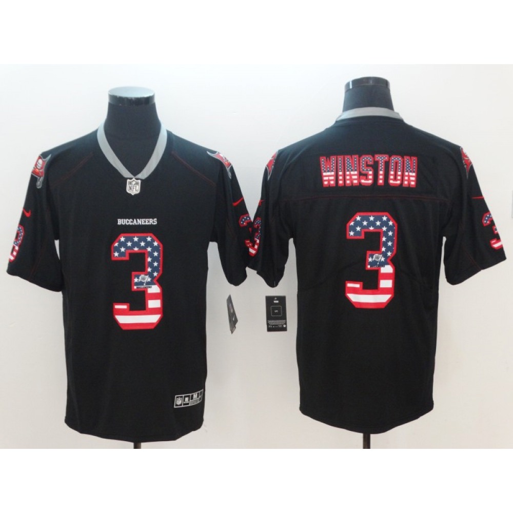 Men's Tampa Bay Buccaneers #3 Jameis Winston Black 2018 USA Flag Fashion Color Rush NFL Limited Jersey