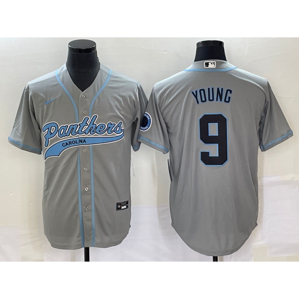 Men's Carolina Panthers #9 Bryce Young Gray With Patch Cool Base Stitched Baseball Jersey