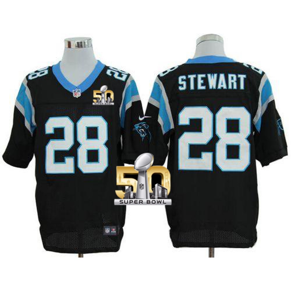 Nike Panthers #28 Jonathan Stewart Black Team Color Super Bowl 50 Men's Stitched NFL Elite Jersey