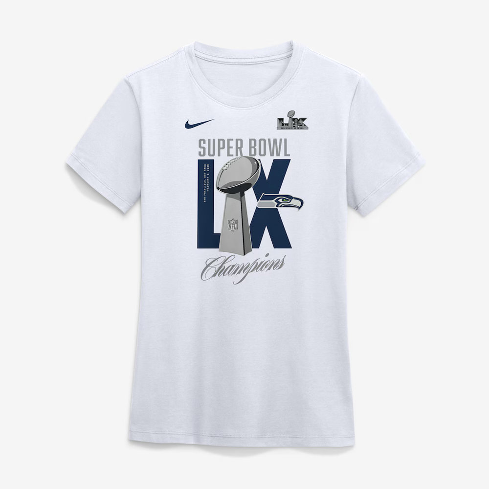 Women's Seattle Seahawks Nike White Super Bowl LX Champions Lombardi Trophy T-Shirt