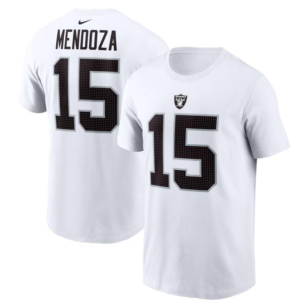 Men's Las Vegas Raiders #15 Fernando Mendoza Nike White Name & Number T-Shirt