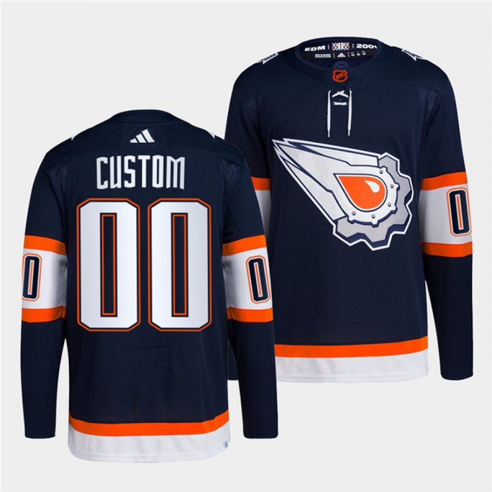 Men's Edmonton Oilers Custom Navy 2022-23 Reverse Retro Stitched Jersey