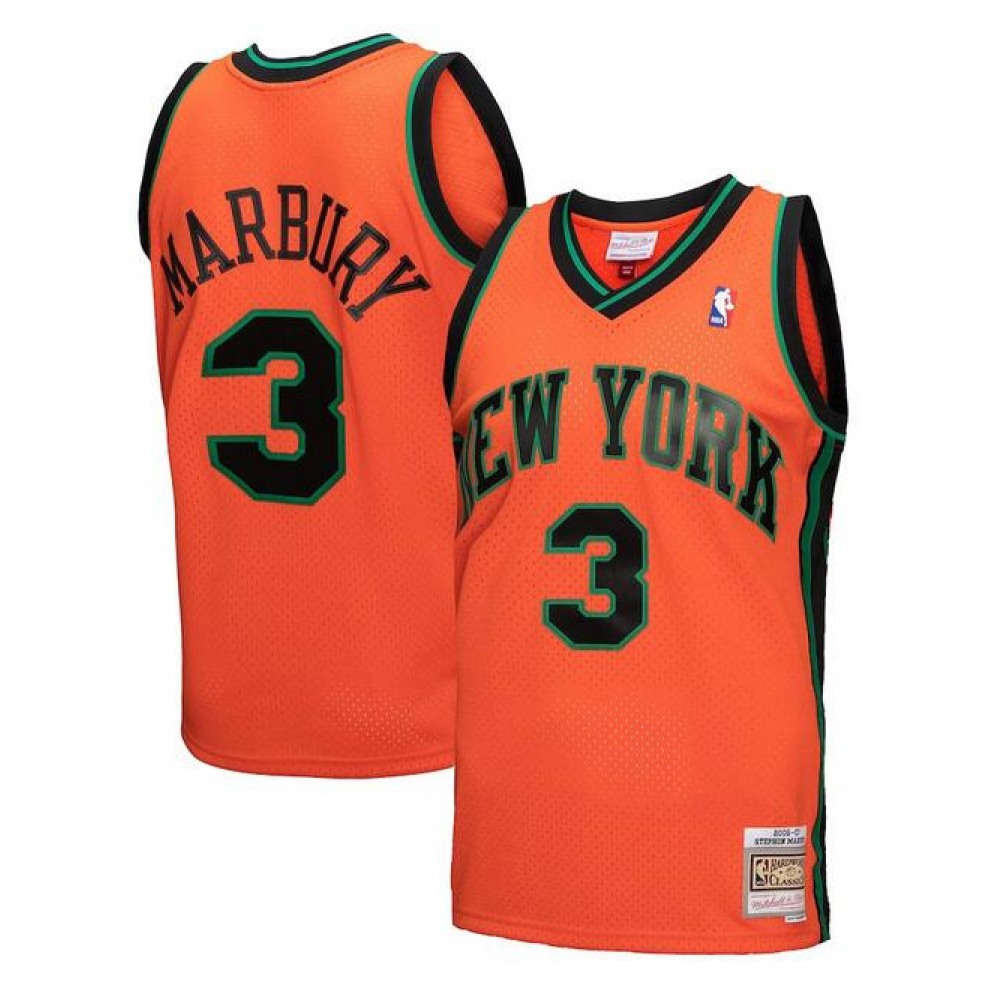 Men's New Yok Knicks #3 Stephon Marbury Orange Mitchell & Ness 2005-06 Hardwood Classics Swingman Stitched Jersey