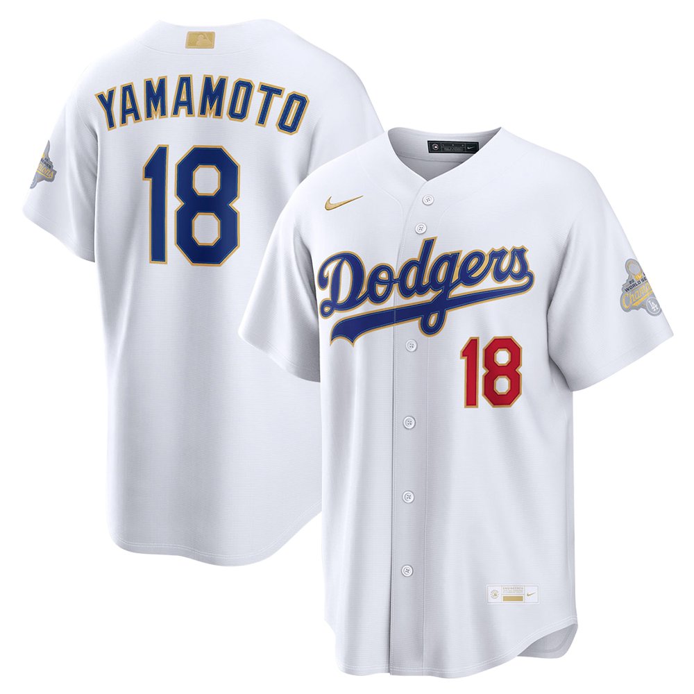 Men's Los Angeles Dodgers #18 Yoshinobu Yamamoto Nike White 2026 Gold Collection Authentic Custom Jersey