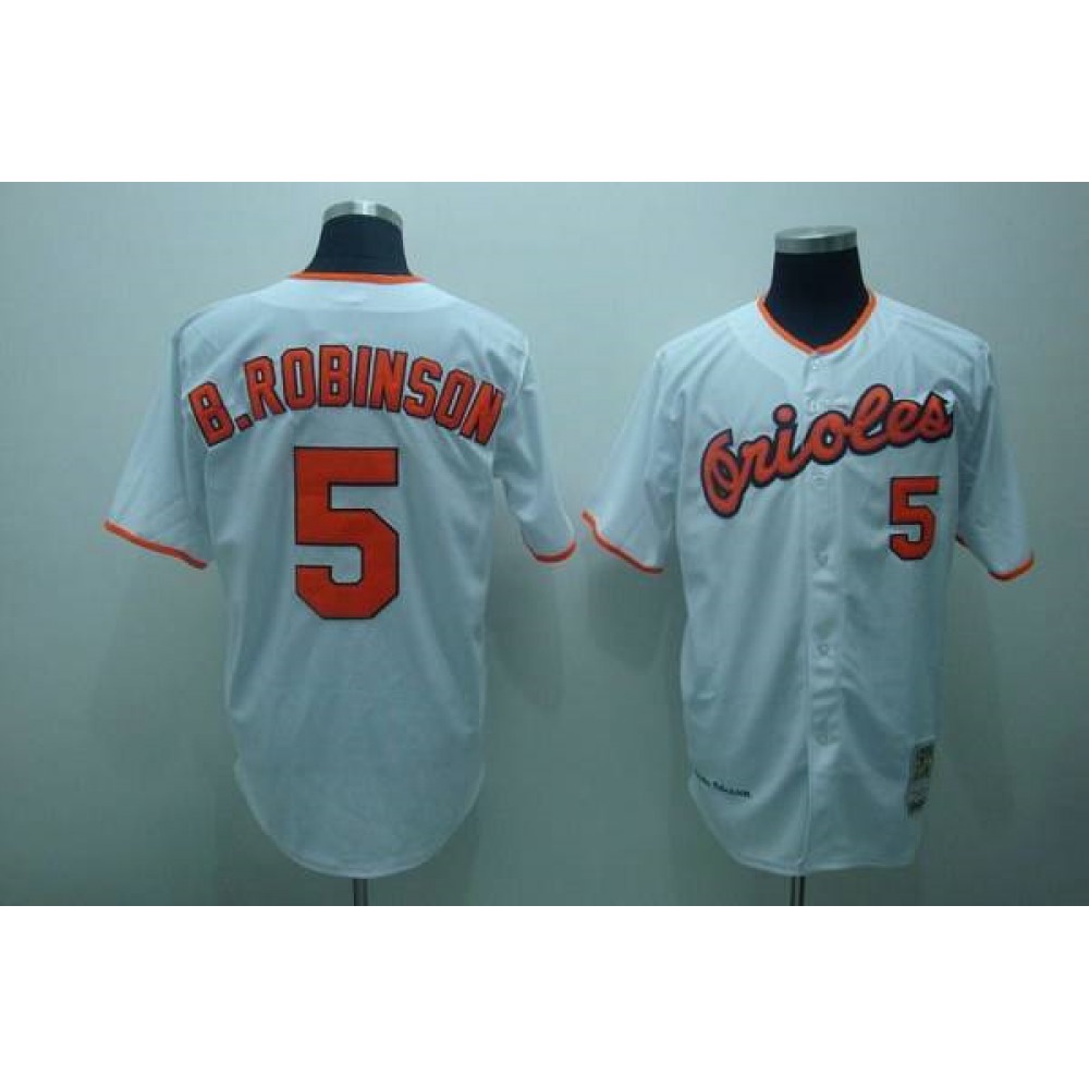 Mitchell and Ness Orioles #5 Brooks Robinson Stitched White Throwback MLB Jersey