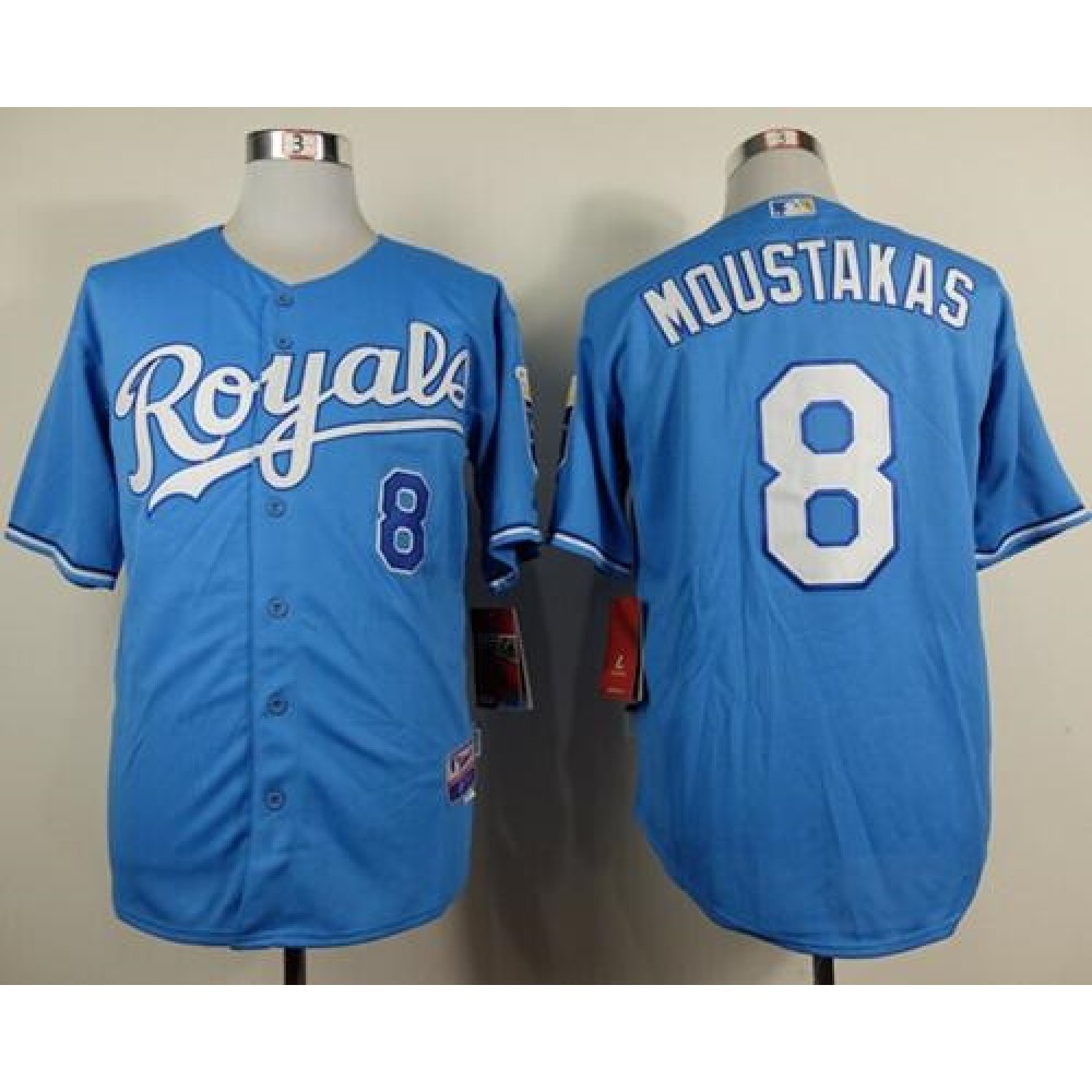 Royals #8 Mike Moustakas Light Blue Alternate 1 Cool Base Stitched MLB Jersey