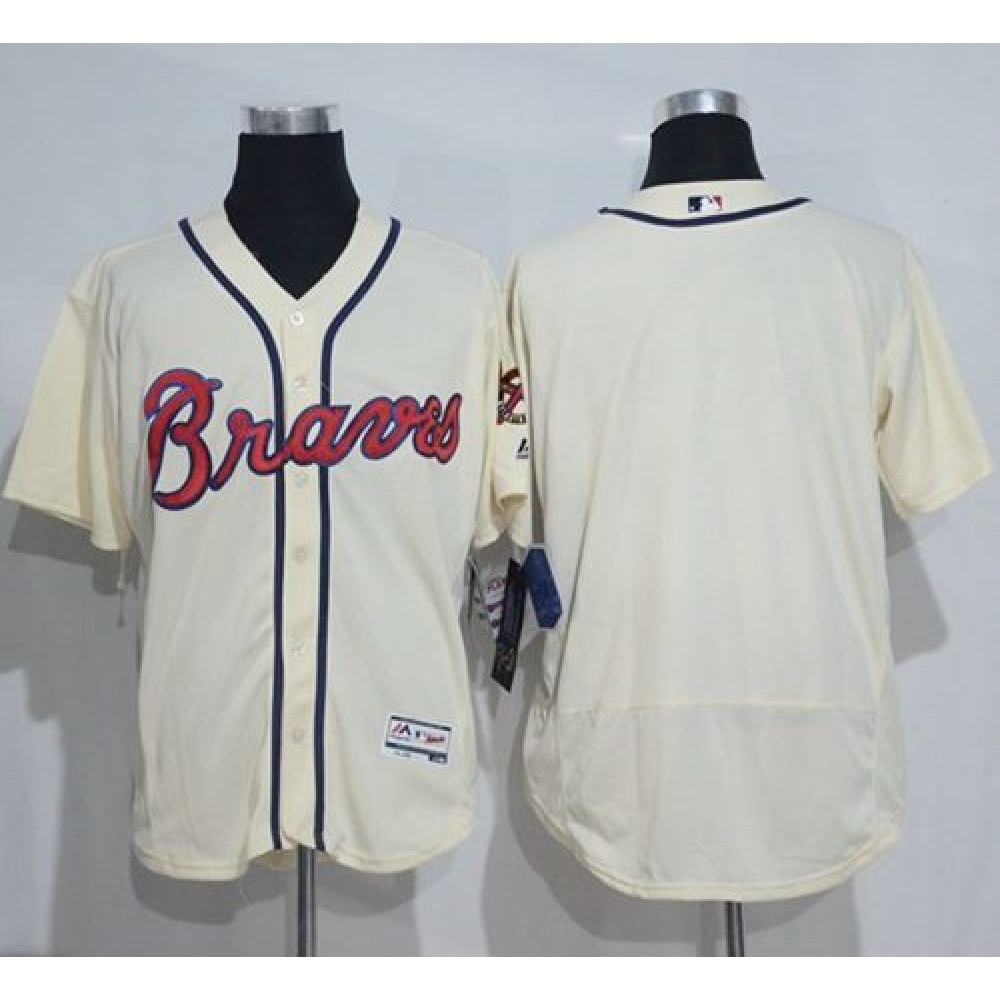 Braves Blank Cream Flexbase Authentic Collection Stitched MLB Jersey