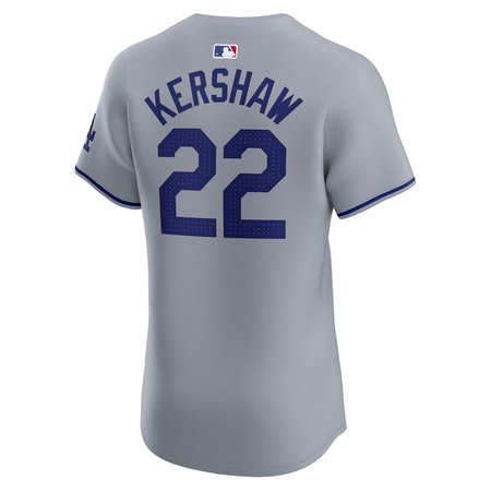 Men's Los Angeles Dodgers Clayton Kershaw Nike Gray 2024 World Series Road Elite Player Jersey