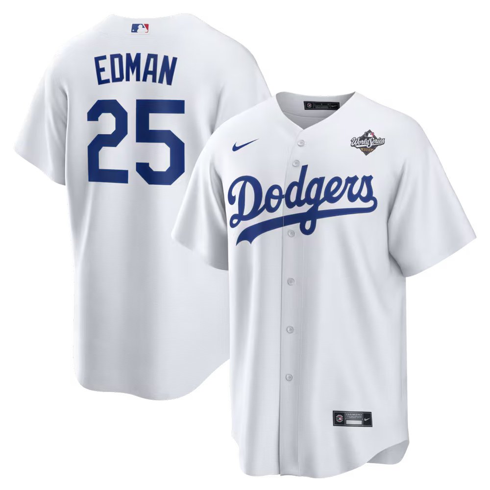 Youth Los Angeles Dodgers #25 Tommy Edman Nike White 2025 World Series Home Replica Player Jersey
