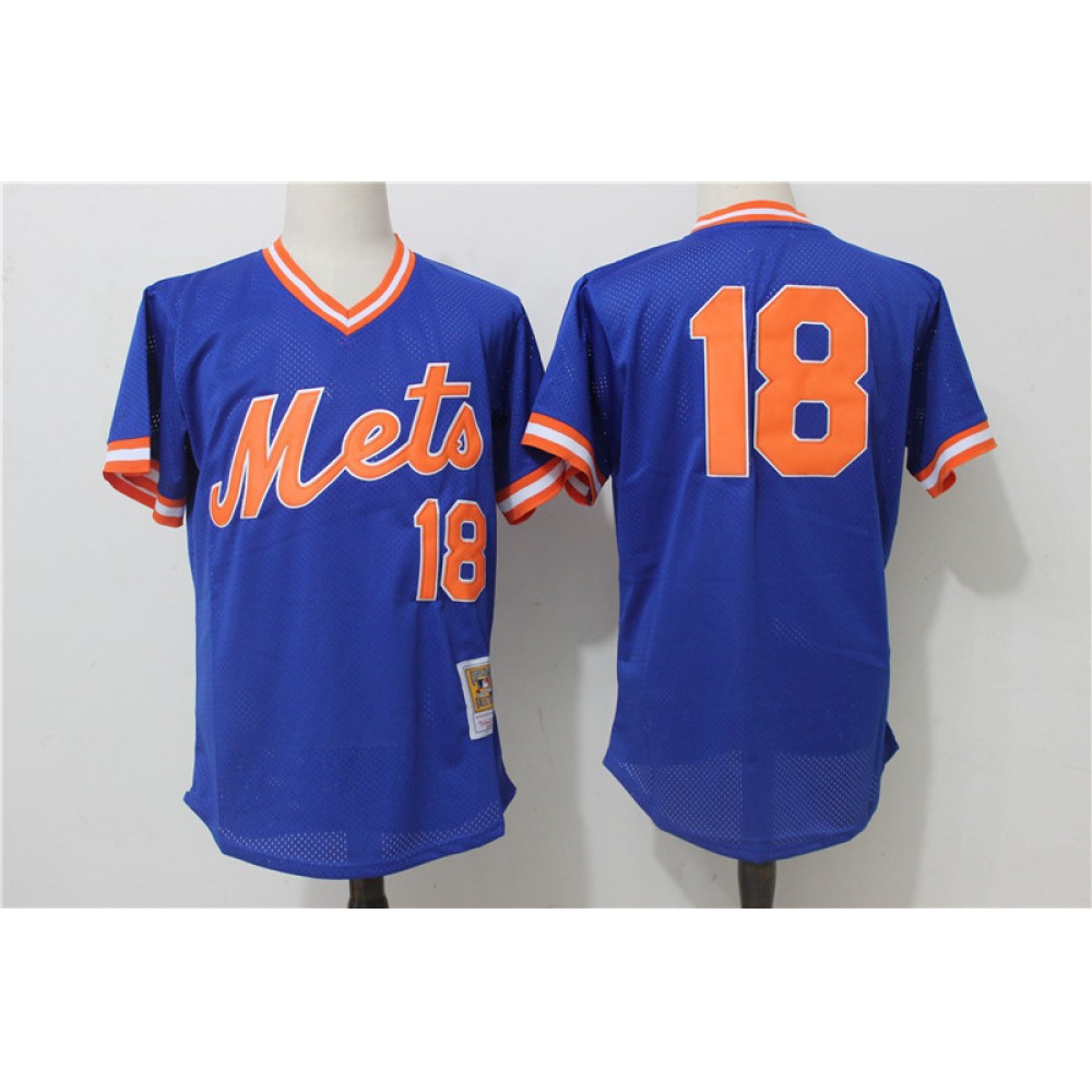 Men's New York Mets #18 Darryl Strawberry Mitchell & Ness Royal Cooperstown Mesh Batting Practice Stitched MLB Jersey