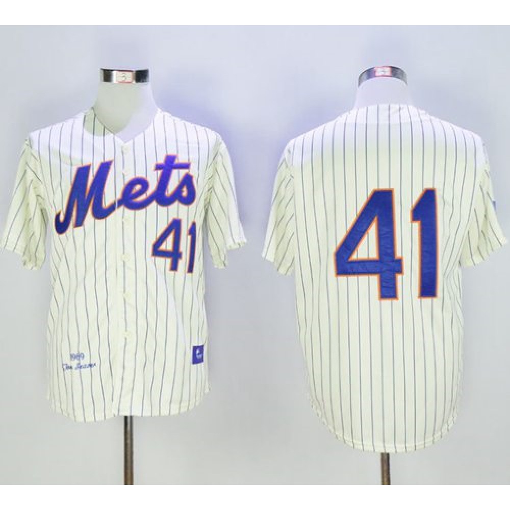 Mitchell And Ness 1969 Mets #41 Tom Seaver Cream(Blue Strip) Throwback Stitched MLB Jersey