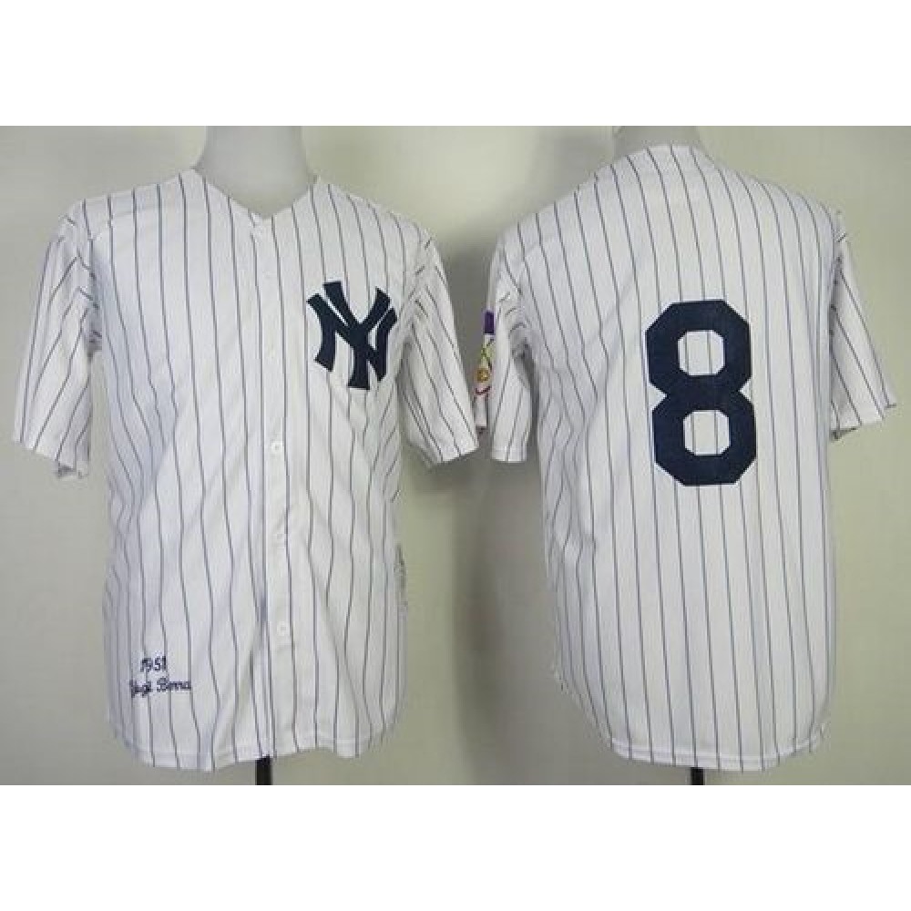 Mitchell and Ness 1951 Yankees #8 Yogi Berra Stitched White Throwback MLB Jersey