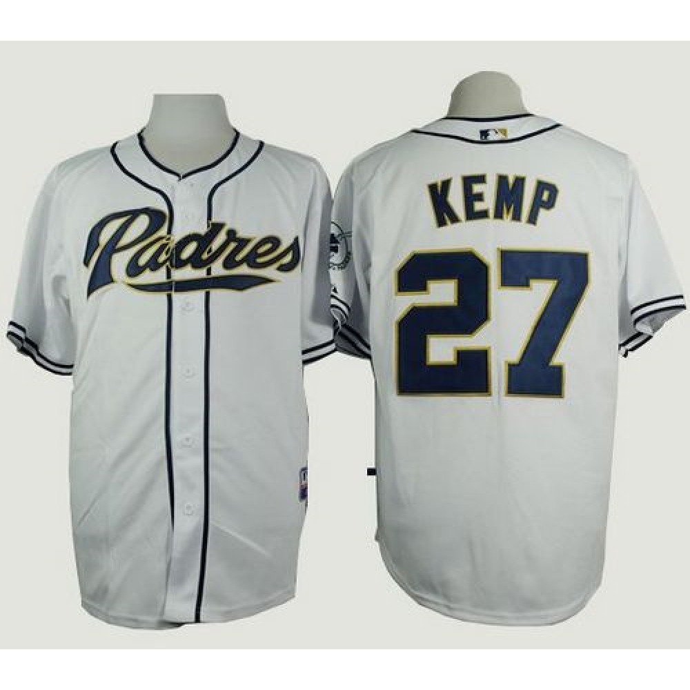 Padres #27 Matt Kemp White Cool Base Stitched MLB Jersey