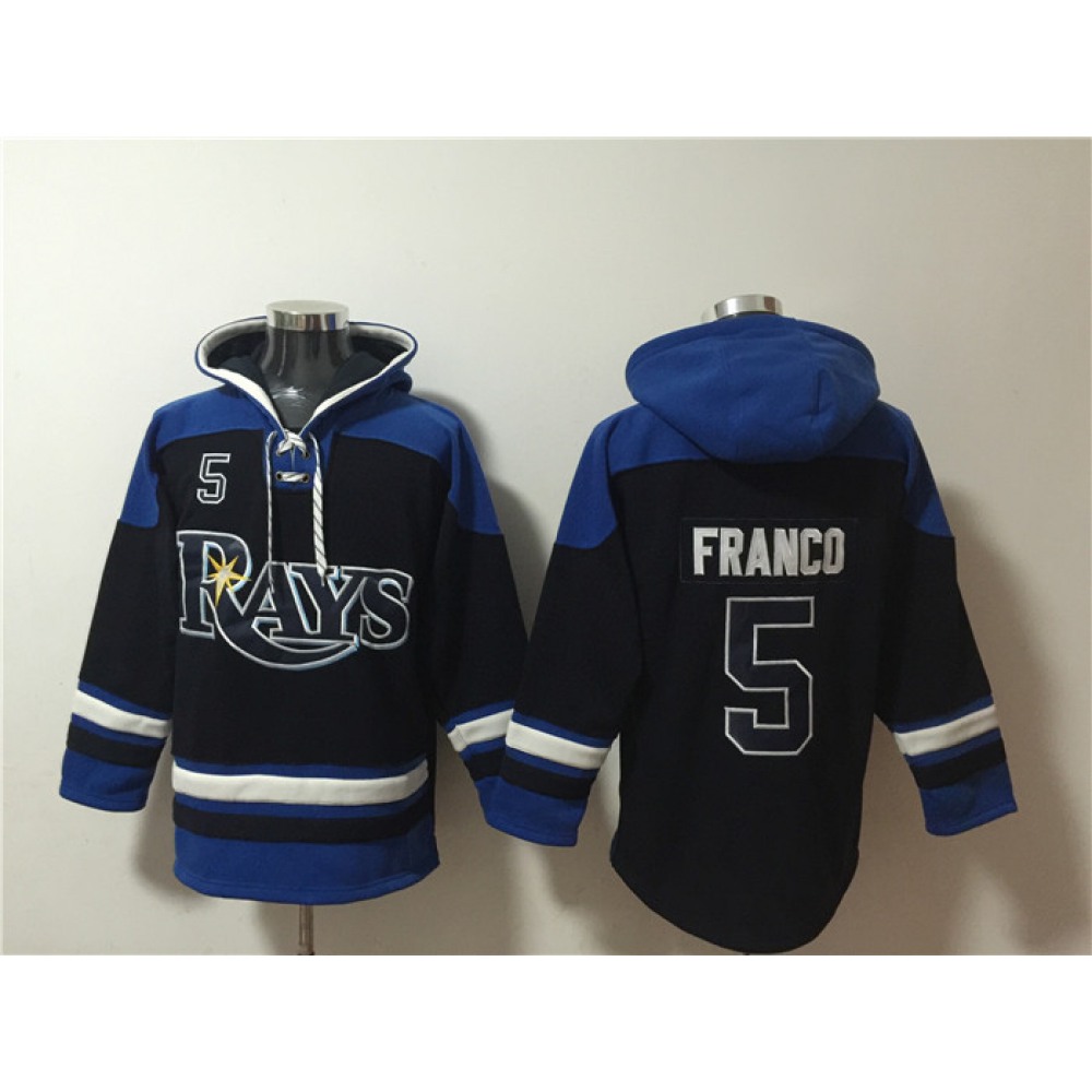 Men's Tampa Bay Rays #5 Wander Franco Black/Blue Lace-Up Pullover Hoodie