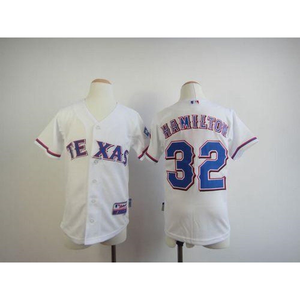 Rangers #32 Josh Hamilton White 2010 World Series Patch Stitched Youth MLB Jersey