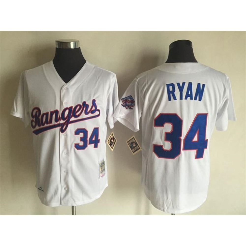 Men's Texas Rangers #34 Nolan Ryan Mitchell And Ness White Throwback Stitched MLB Jersey