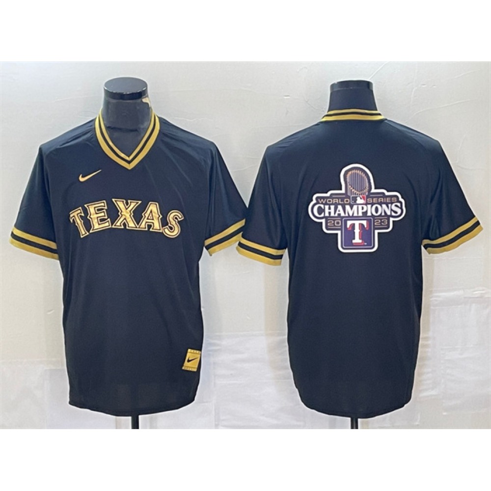 Men's Texas Rangers Black 2023 World Series Champions Big Logo Cool Base Stitched Baseball Jersey