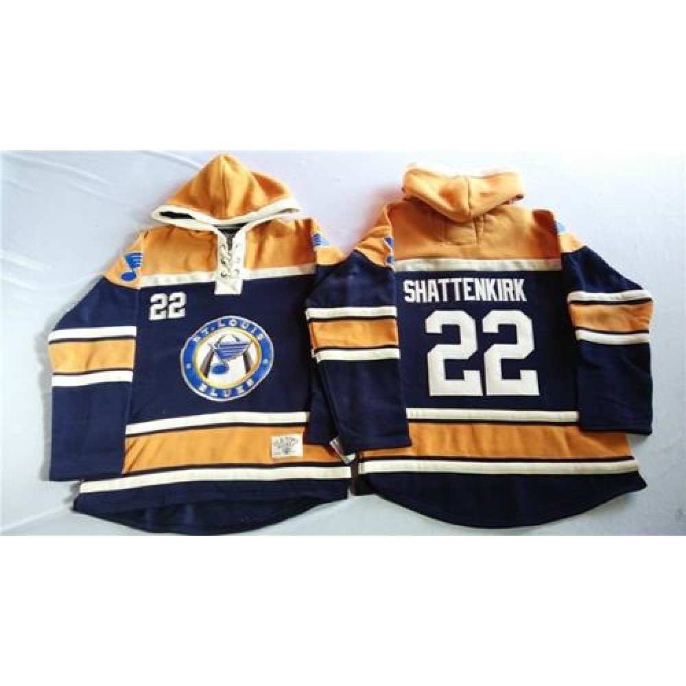 Blues #22 Kevin Shattenkirk Navy Blue/Gold Sawyer Hooded Sweatshirt Stitched NHL Jersey