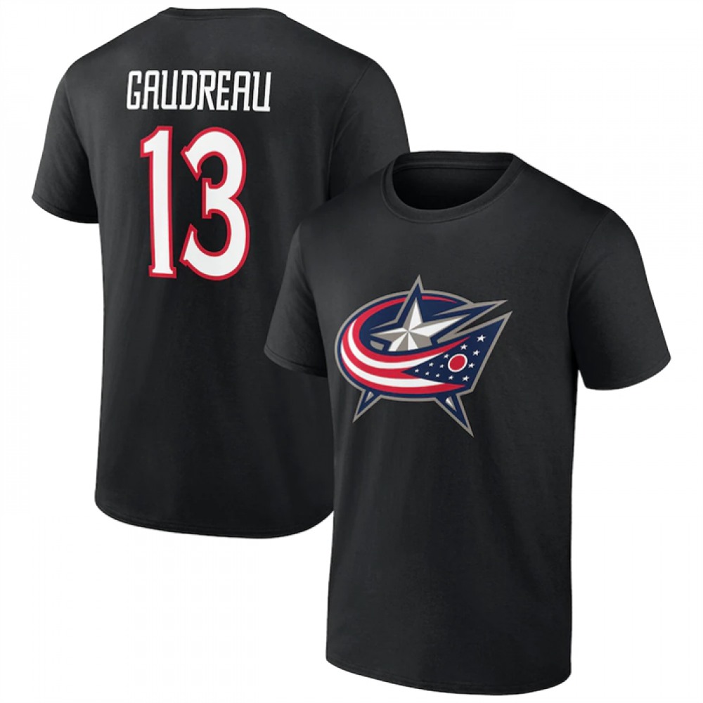 Men's Columbus Blue Jackets #13 Johnny Gaudreau Black T-Shirt