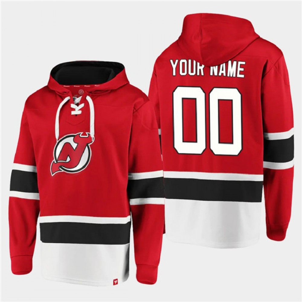 Men's New Jersey Devils Active Player Custom Red Ageless Must-Have Lace-Up Pullover Hoodie
