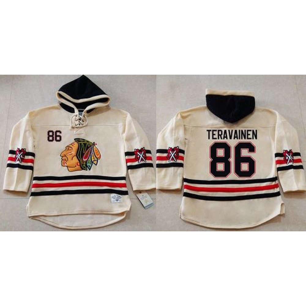 Blackhawks #86 Teuvo Teravainen Cream Heavyweight Pullover Hoodie Stitched NHL Jersey