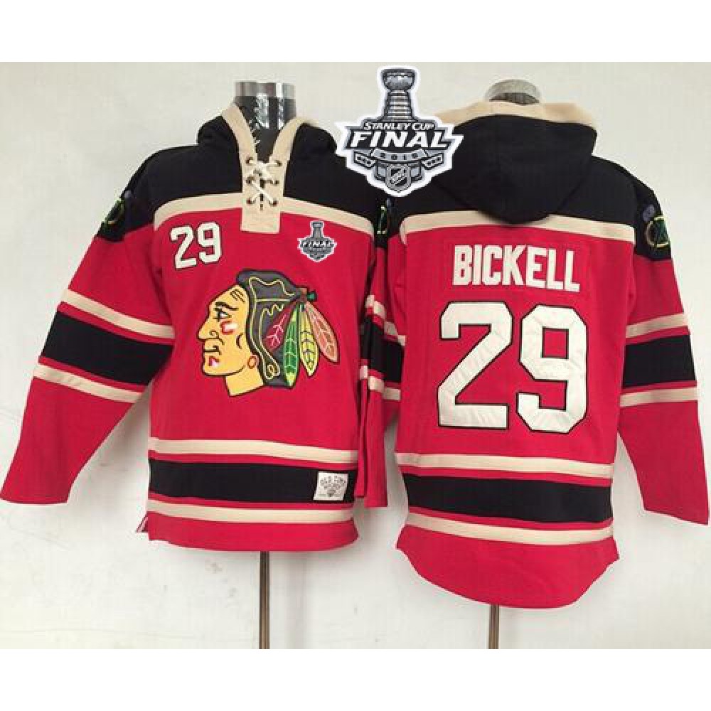 Blackhawks #29 Bryan Bickell Red Sawyer Hooded Sweatshirt 2015 Stanley Cup Stitched NHL Jersey