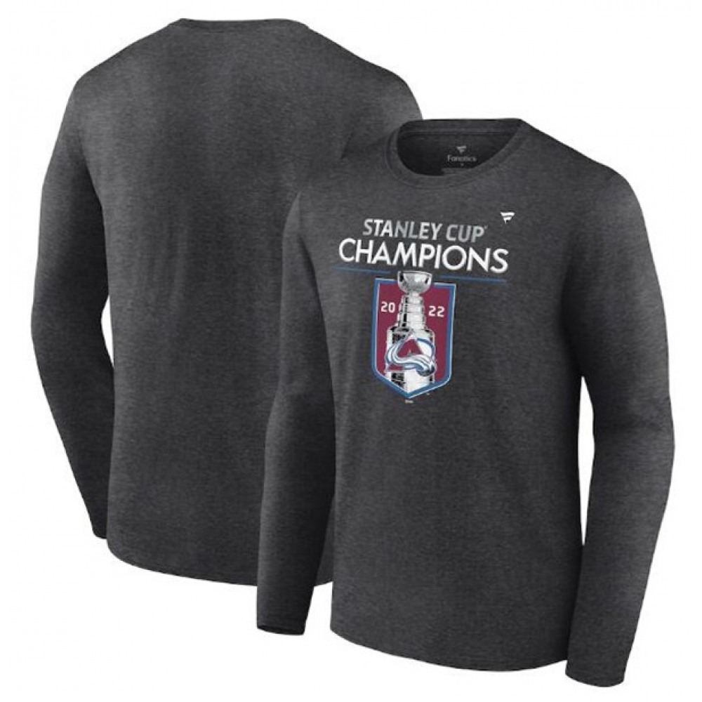 Men's Colorado Avalanche Heathered Charcoal 2022 Stanley Cup Champions Locker Room Long Sleeve T-Shirt