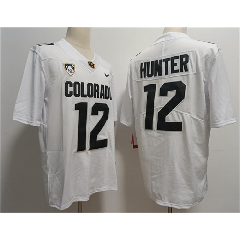 Men's Colorado Buffaloes White #12 Hunter Stitched Jersey