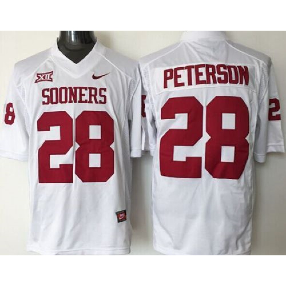 Sooners #28 Adrian Peterson White Stitched NCAA Jersey