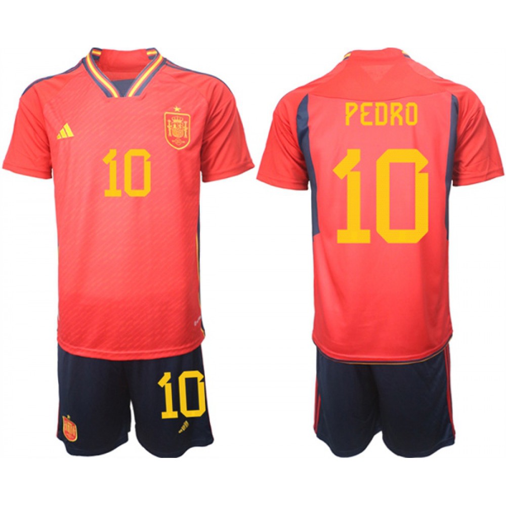 Men's Spain #10 Pedro Red Home Soccer Jersey Suit