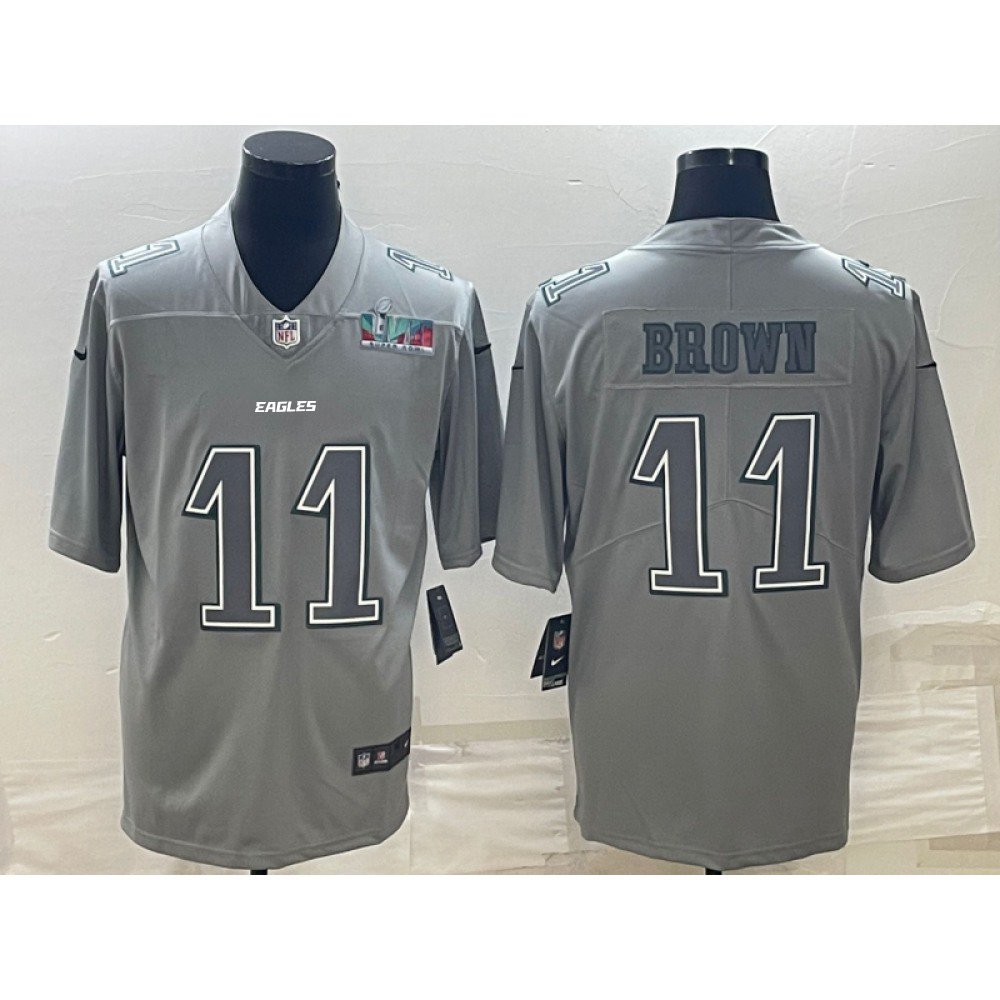 Men's Philadelphia Eagles #11 A.J. Brown Gray Super Bowl LVII Patch Atmosphere Fashion Stitched Jersey