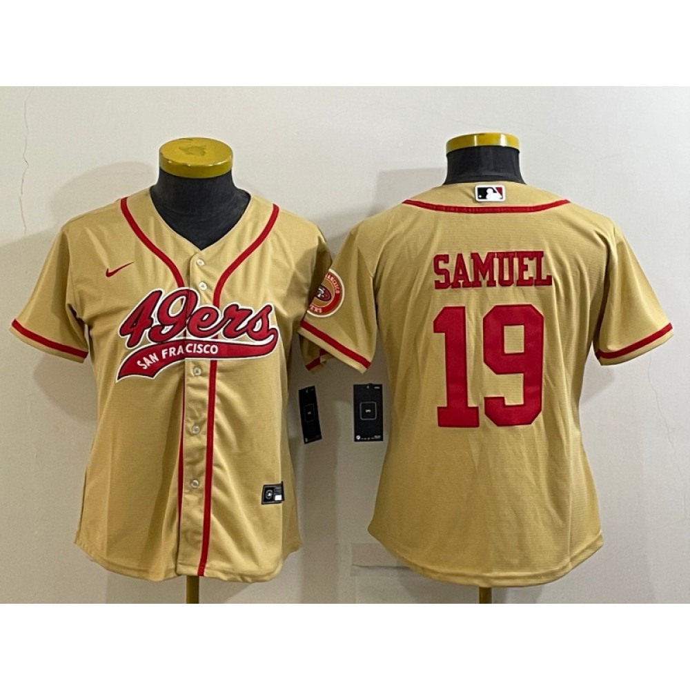 Women's San Francisco 49ers #19 Deebo Samuel Gold With Patch Cool Base Stitched Baseball Jersey(Run Small)