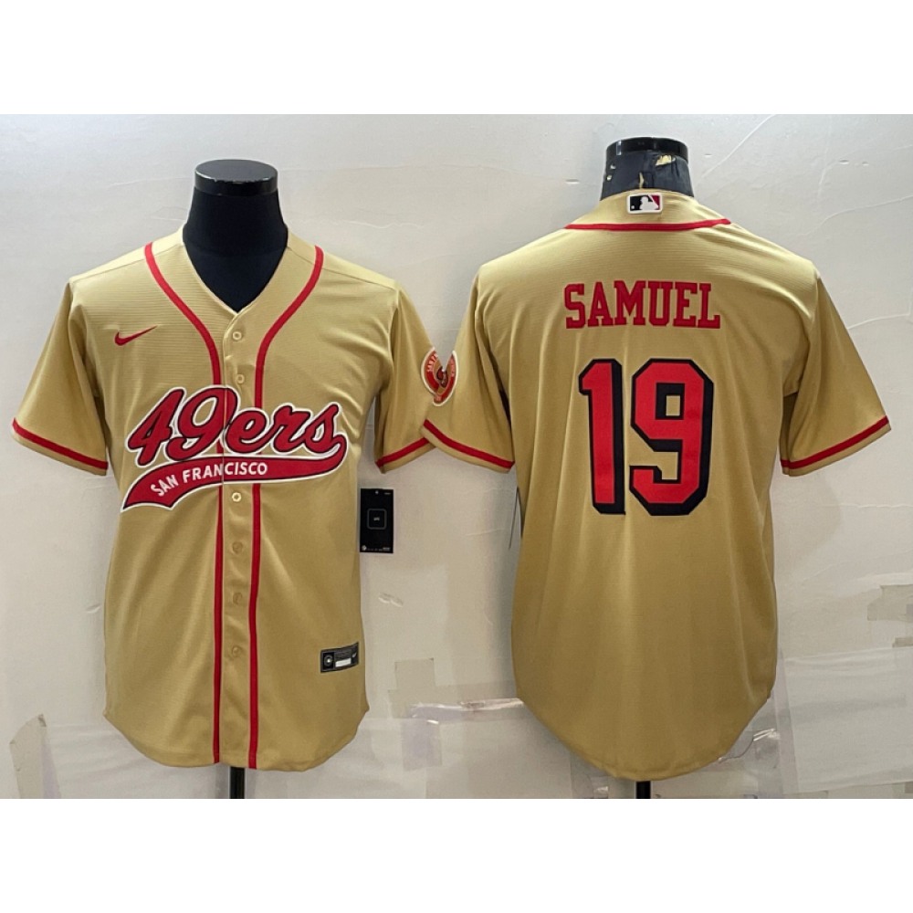 Men's San Francisco 49ers #19 Deebo Samuel New Gold With Patch Cool Base Stitched Baseball Jersey