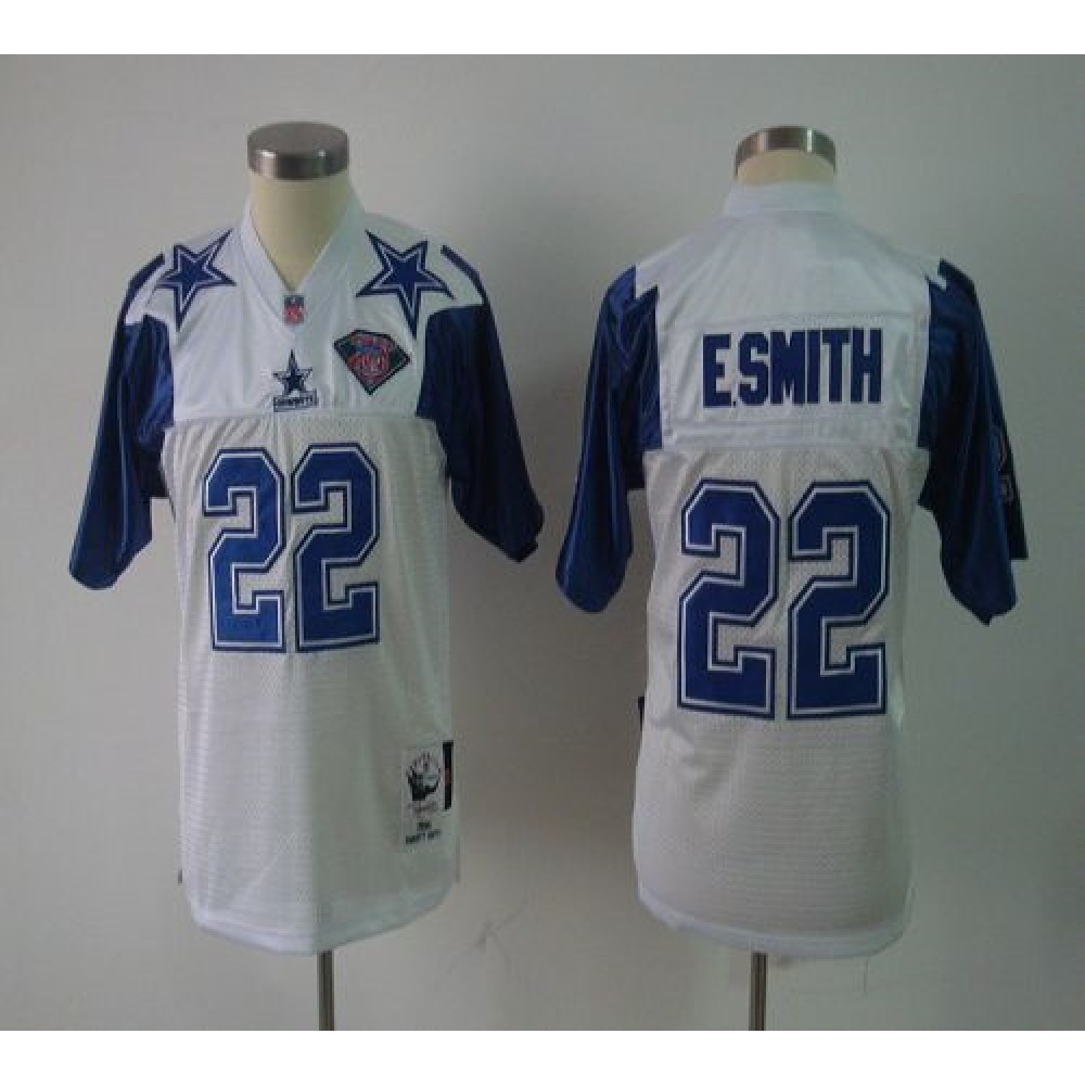 Mitchell And Ness Cowboys #22 E.Smith White With 75TH Stitched Youth NFL Jersey
