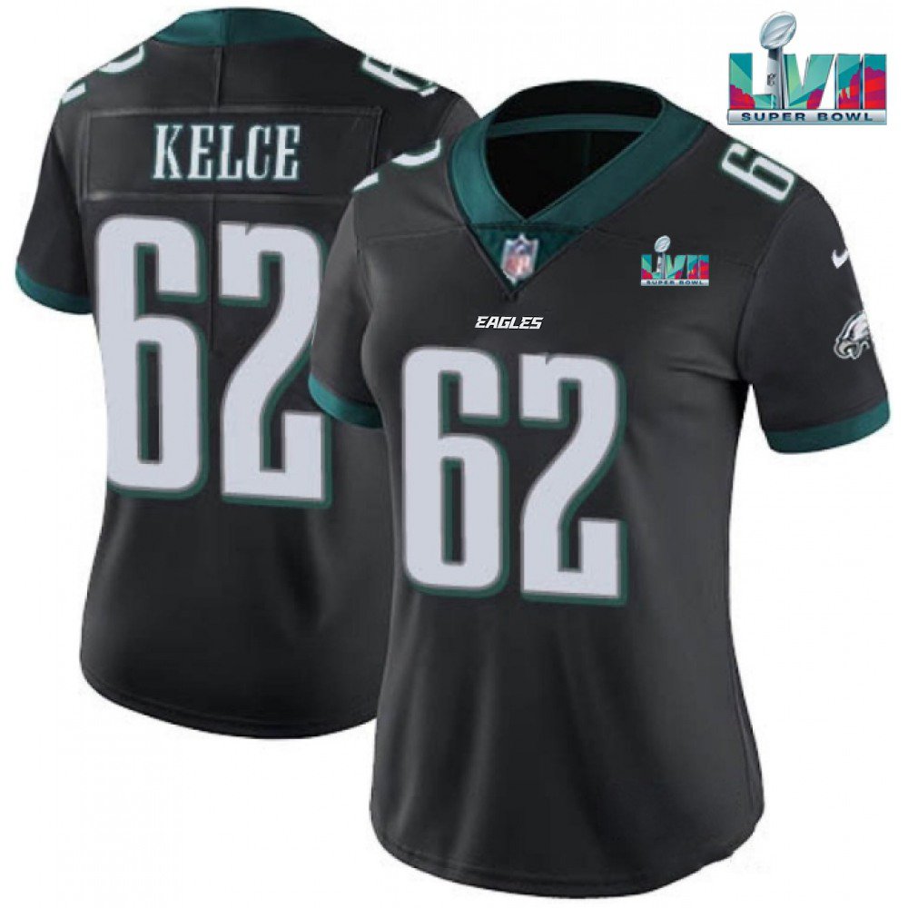 Women's Philadelphia Eagles #62 Jason Kelce Black Super Bowl LVII PatchVapor Untouchable Limited Stitched Football Jersey(Run Small)