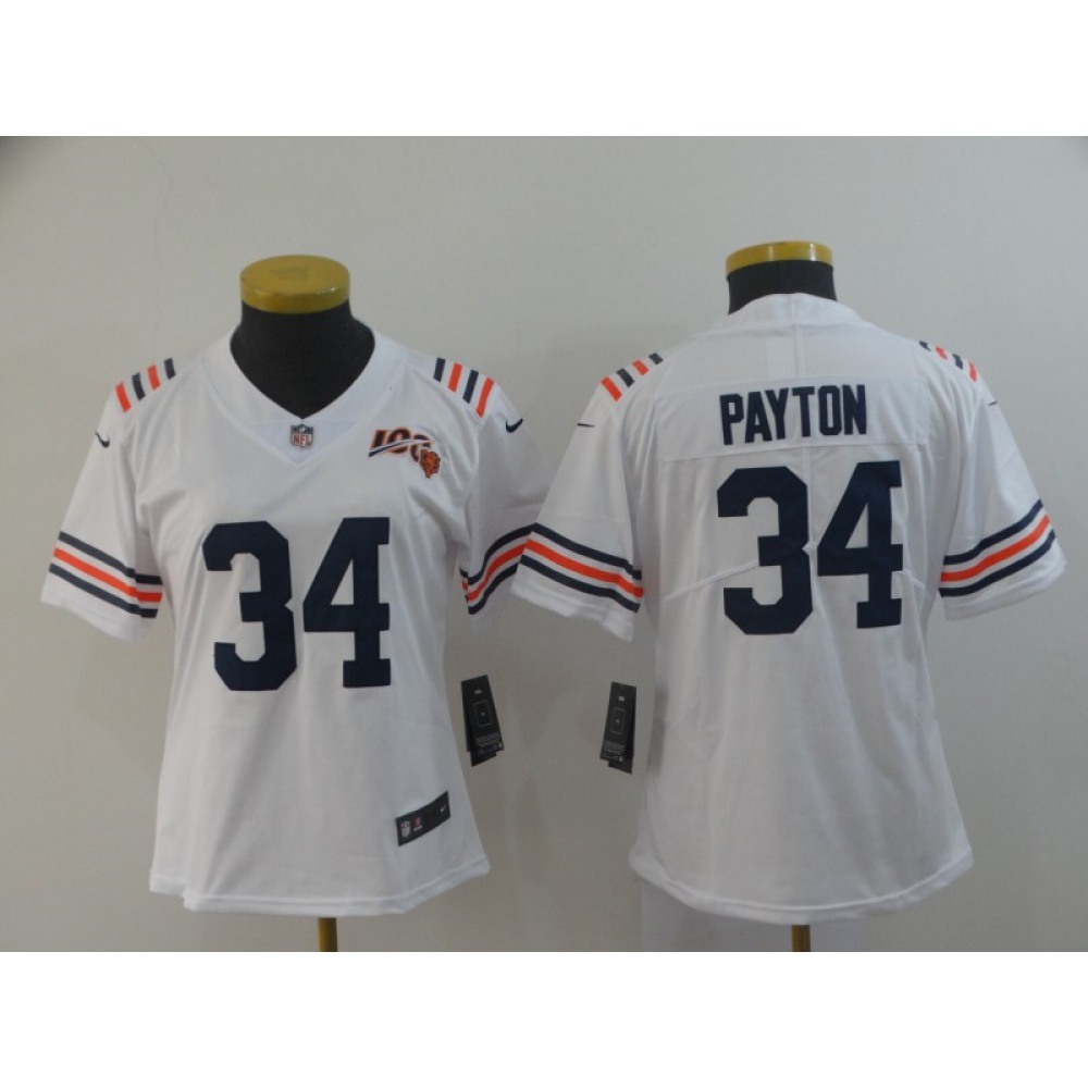 Women's Chicago bears #34 Walter Payton White 2019 100th Season Limited Stitched NFL Jersey