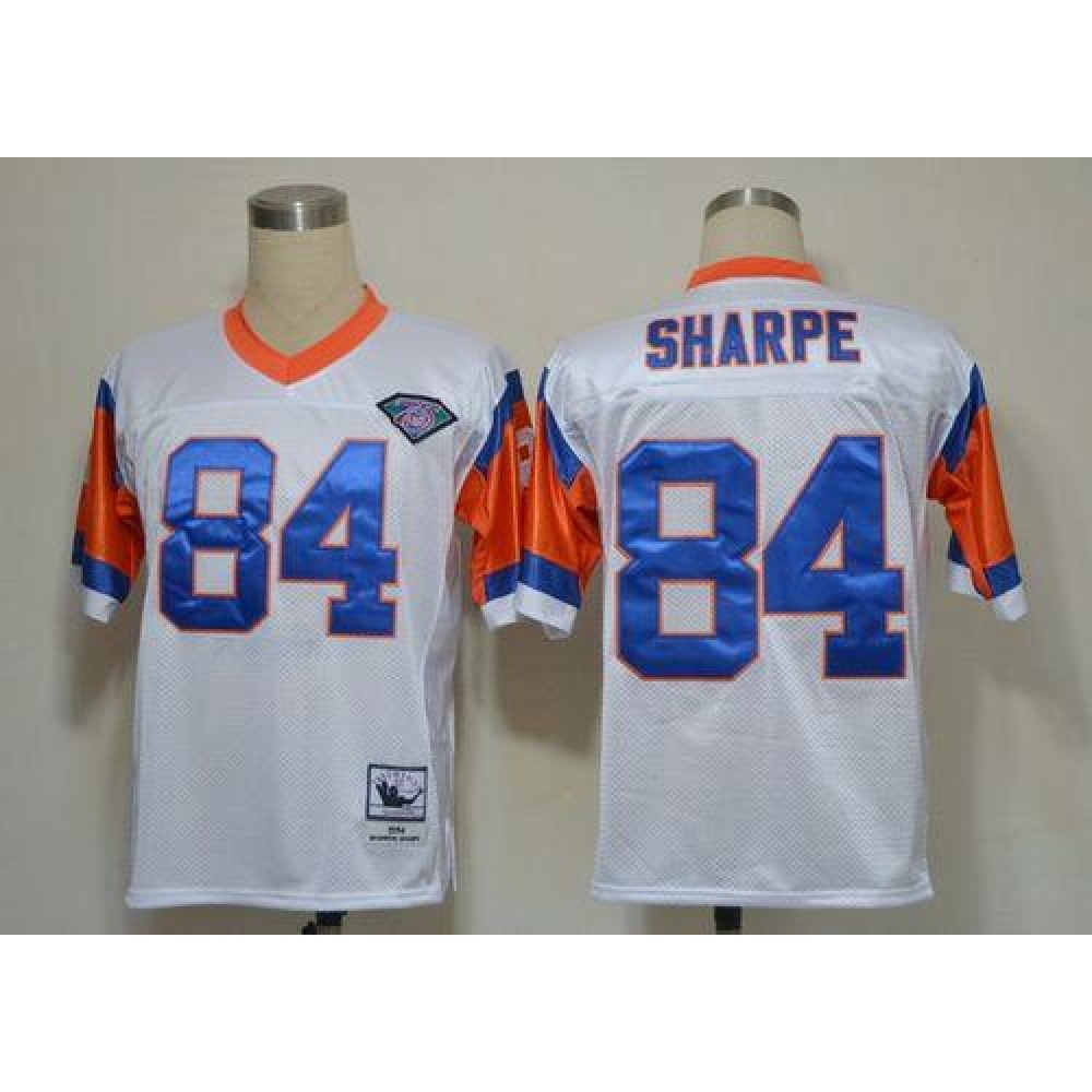 Mitchell And Ness(75TH) Broncos #84 Shannon Sharpe White Stitched Throwback NFL Jersey