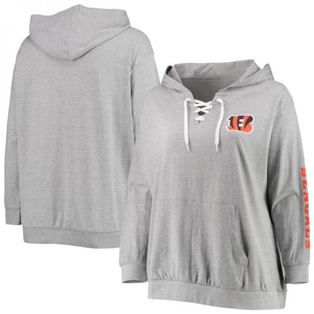 Women's Cincinnati Bengals Heathered Gray Plus Size Lace-Up Pullover Hoodie