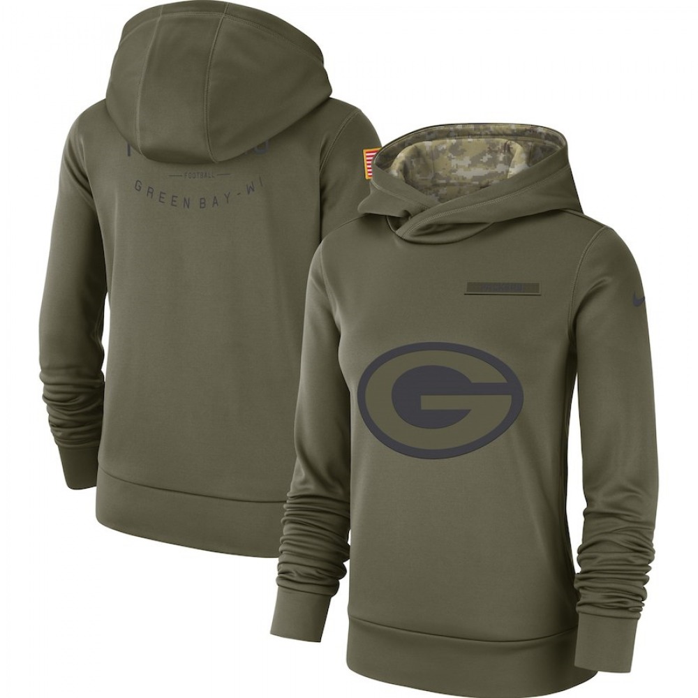 Women's Green Bay Packers Olive Salute to Service Team Logo Performance Pullover NFL Hoodie