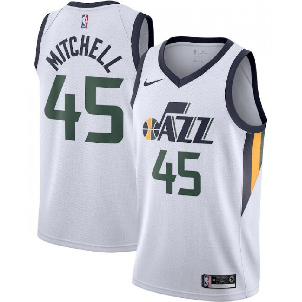 Men's Utah Jazz #45 Donovan Mitchell White Association Edition Swingman Stitched Jersey