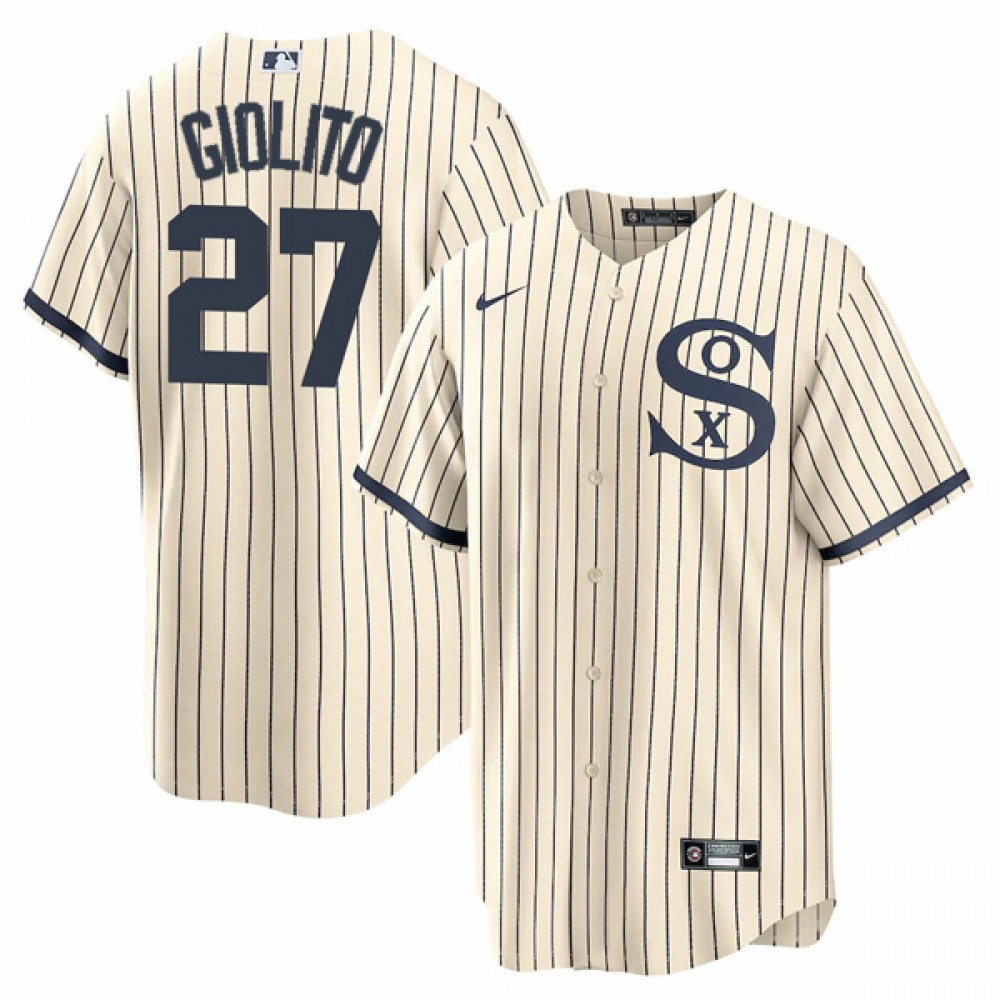 Men's Chicago White Sox #27 Lucas Giolito 2021 Cream/Navy Name&Number Field of Dreams Cool Base Stitched Jersey