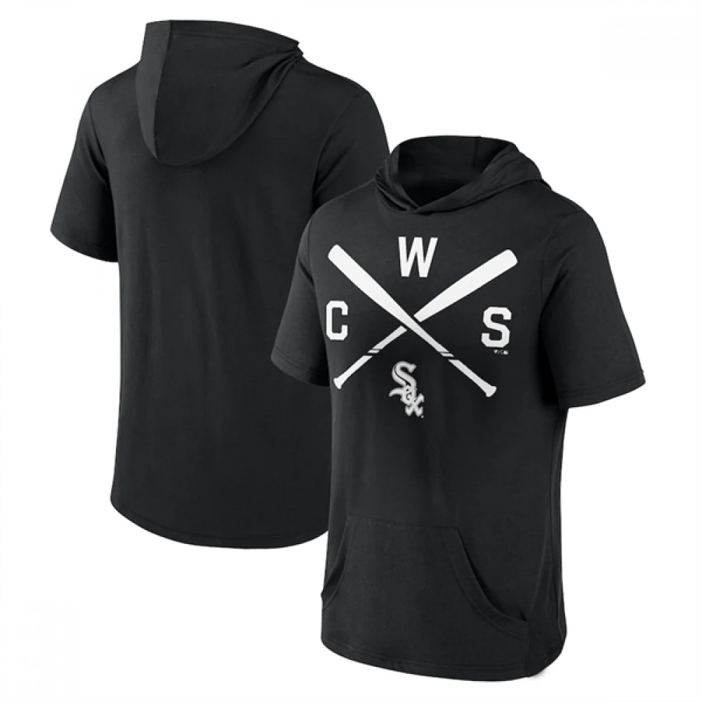 Men's Chicago White Sox Black Short Sleeve Pullover Hoodie