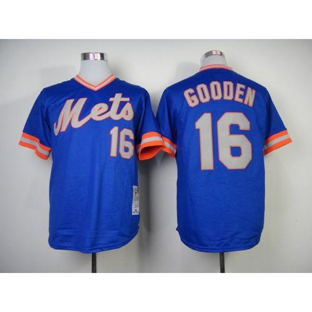 Mitchell And Ness 1983 Mets #16 Dwight Gooden Blue Throwback Stitched MLB Jersey