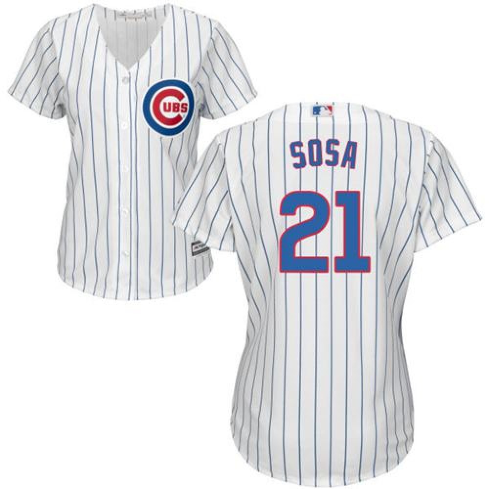 Cubs #21 Sammy Sosa White(Blue Strip) Home Women's Stitched MLB Jersey