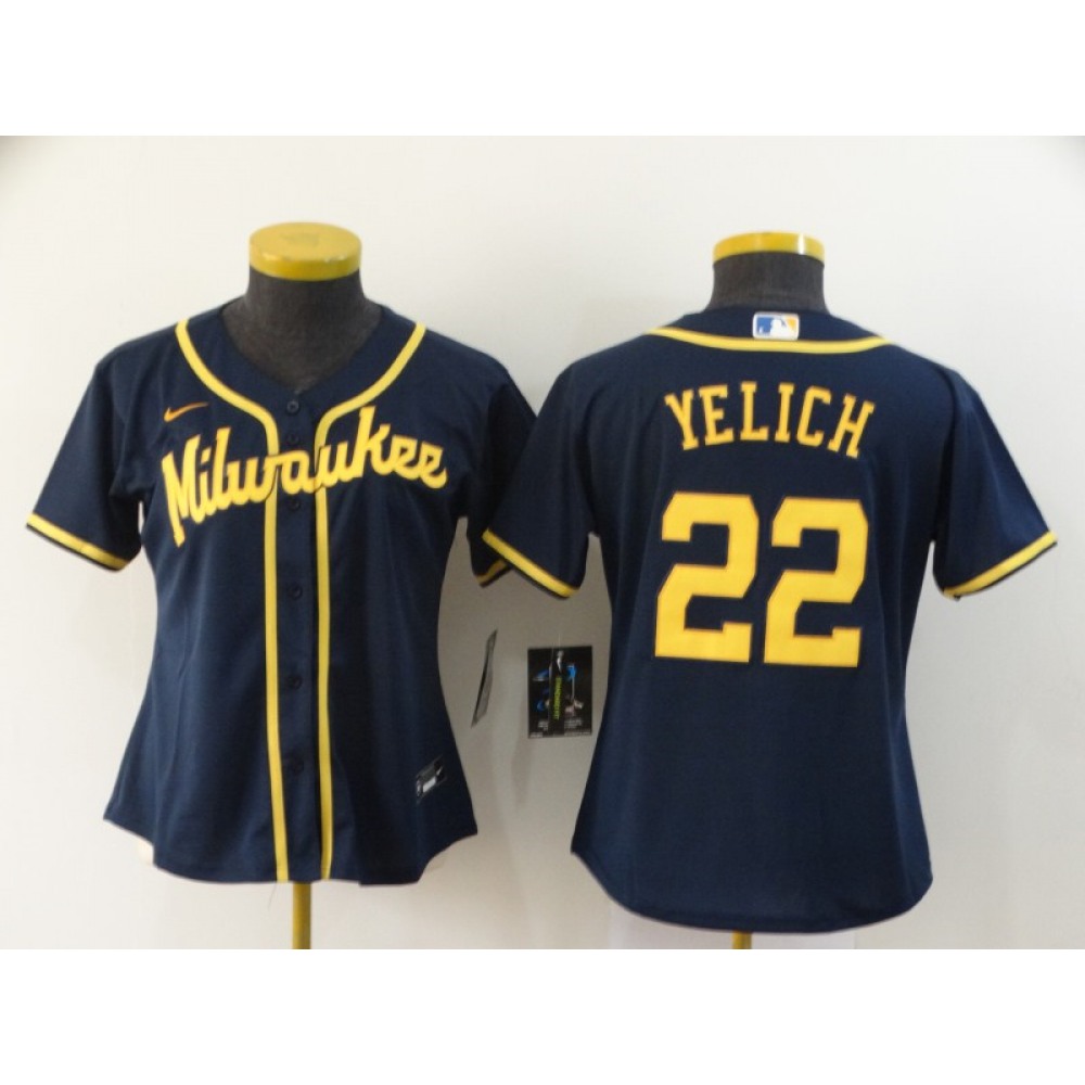 Women's Milwaukee Brewers #22 Christian Yelich Black Cool Base Stitched MLB Jersey(Run Small)